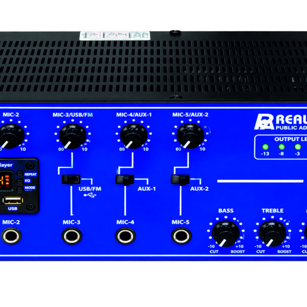 - Line Input & Output on each zone for connecting to a Mixer and Booster Amplifier respectively. Preamplifier output for recording.