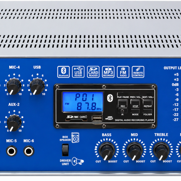 700 WATTS WITH BUILT-IN DIGITAL PLAYER 2 ZONE PA MIXER AMPLIFIER- 6 Mic, 2 Aux Inputs and CD/Stereo input (L&R).